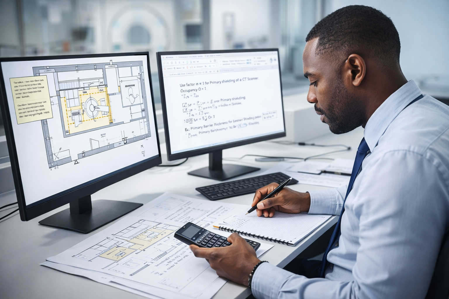 – Determination of Shielding material Thicknesses in varying Walls bordering the imaging room